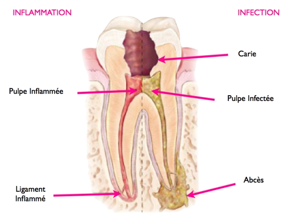 La pulpe infectée est retirée et les canaux sont soigneusement nettoyés et désinfectés.